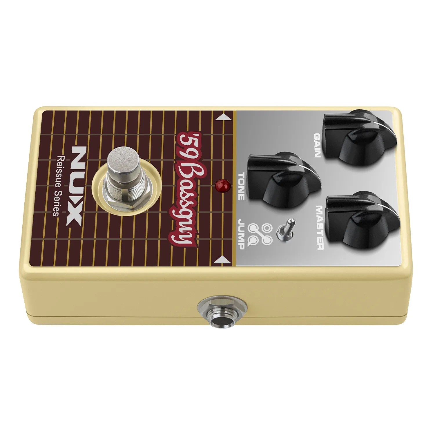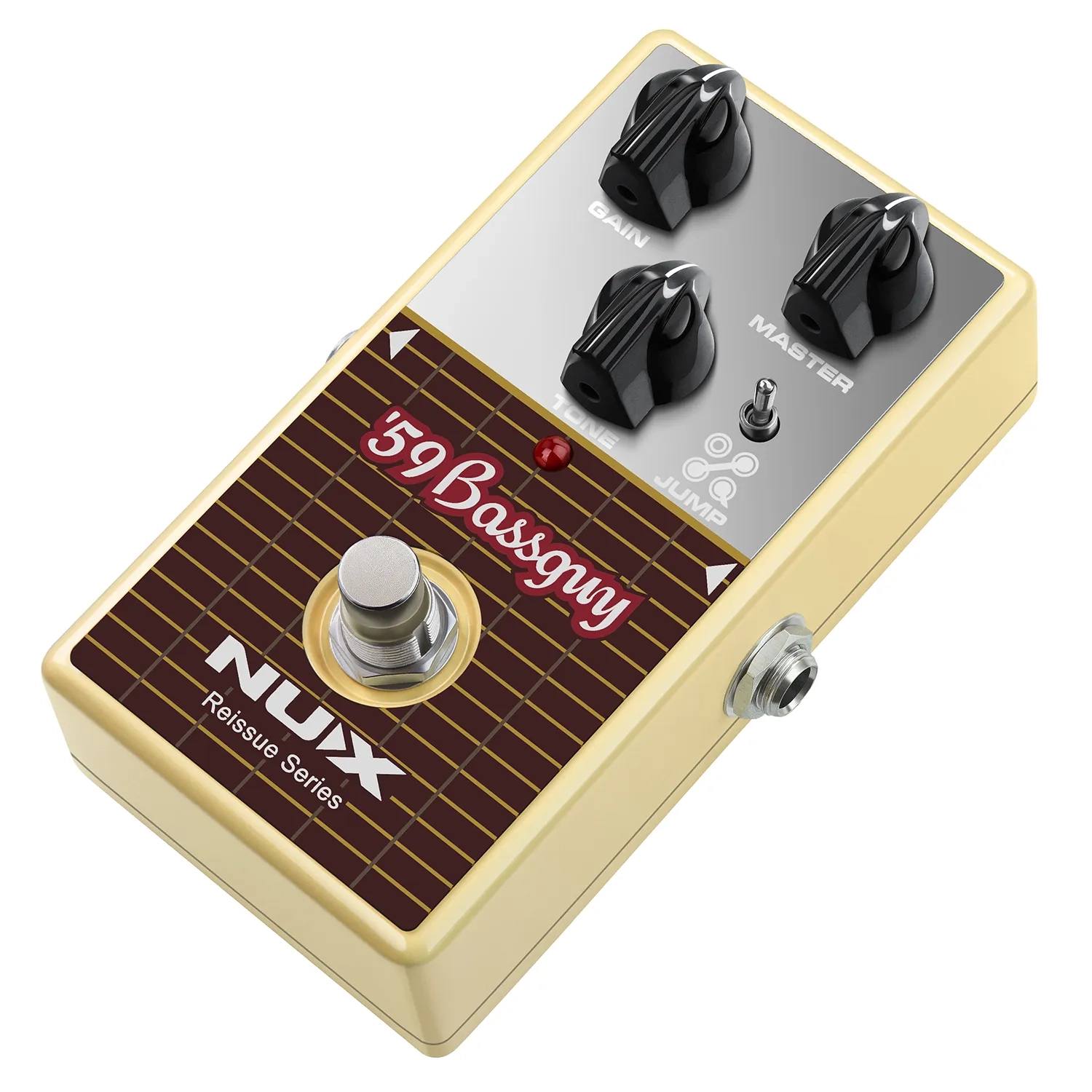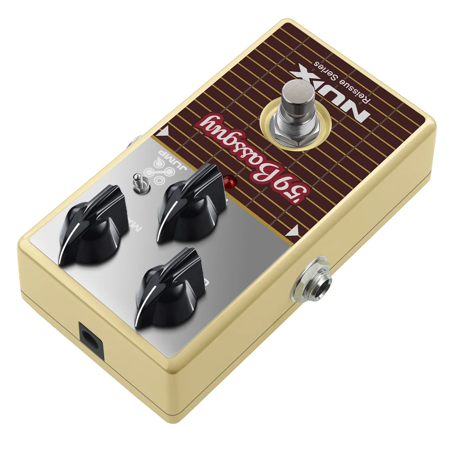 The NUX ’59 Bassguy from the Reissue series captures the legendary tone of the Fender ’59 Bassman amp. Featuring three intuitive controls - GAIN, MASTER, and VOLUME - users can fine-tune their sound to perfection! What sets the ’59 Bassguy apart is the unique JUMP switch, which faithfully simulates the iconic ‘Jumpering’ effect of the Fender ’59 Bassman. With a simple flip of the switch, players can easily toggle between two distinct tones, offering that classic vintage "chime" on the standard setting, and the thicker, saturated gain sounds produced by jumping the two channels of the classic amp upon which this pedal is based!