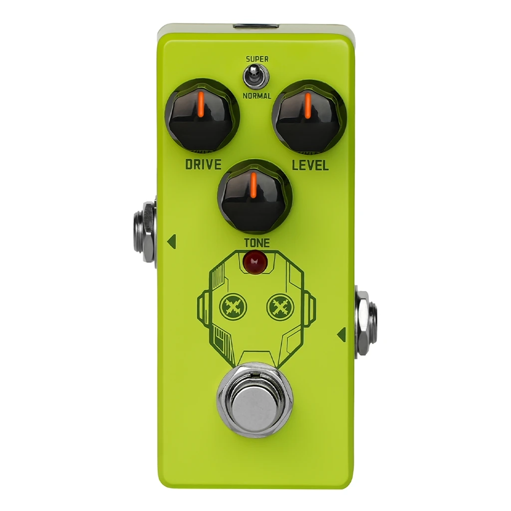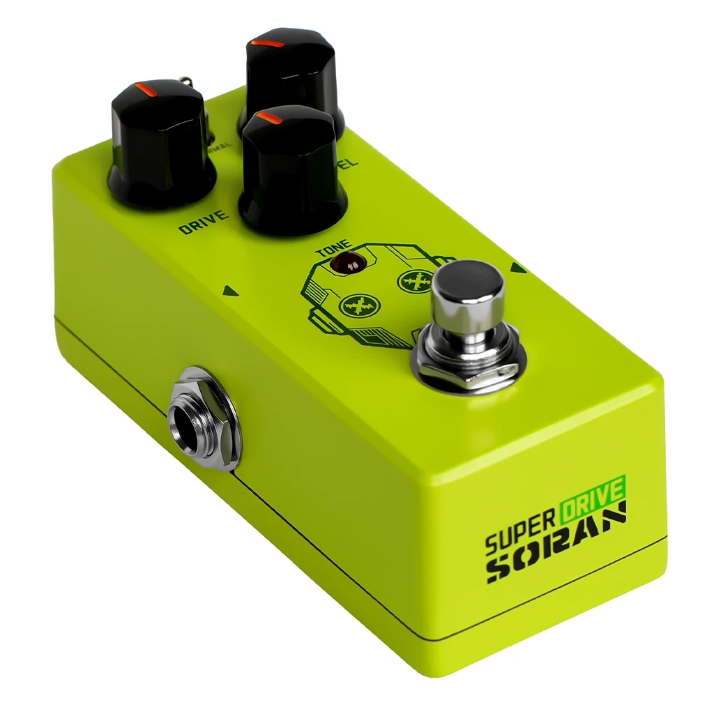 The Super Drive Overdrive Mini Pedal is a compact analog stompbox that clones the classic "Green Box" circuit, designed for guitarists who pursue smooth, dynamic overdrive tones, need versatility across genres, and favor a compact design. It recreates the iconic classic overdrive sound, plus it adds a Super Mode that boosts gain for a modern, saturated overdrive texture. It can also be used as an overdrive boost in front of your main distortion pedal or amp, adding tight, clear character to your tone. Equipped with True Bypass, it ensures zero signal interference when bypassed. Its rugged, portable metal enclosure fits easily on any pedalboard. Whether you’re playing retro styles or crafting modern sounds, it’s a versatile go-to overdrive for your pedalboard.