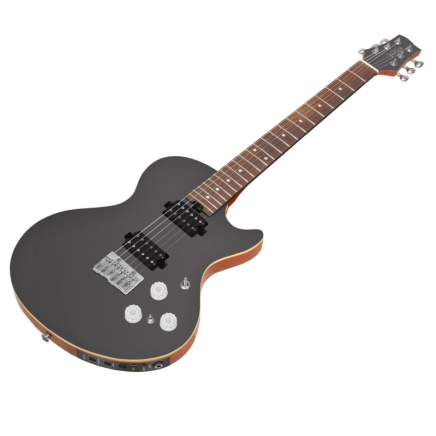 The Verser comes equipped with a rosewood fretboard, mahogany neck, high-precision CNC-machined stainless steel bridge, and 1:23 ratio tuning machine heads, and is strung with D'Addario EXL110 strings from the factory.